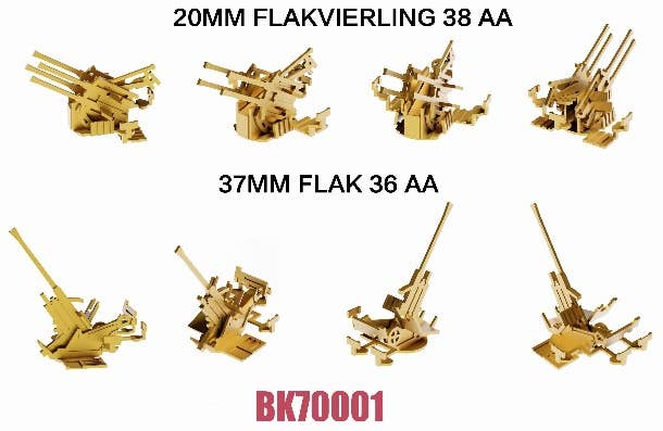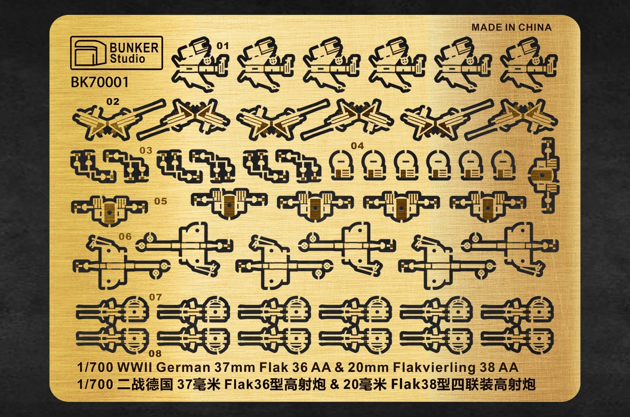 Bunker Studio brings us a set of beautifully detailed photo etched parts for the 37MM Flak 36 & 20MM Quadruple Anti-Aircraft Gun 38 for the 1/700 scale Flak Tower kit! Give your model a visual upgrade today!