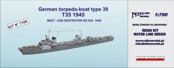 The German torpedo boat Type 39 was originally ordered in 1939; the T35 was completed in 1944. After operations in the Baltic Sea toward the end of the war, she was ultimately dismantled in 1952.