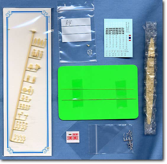 Kaba class destroyer was promptly designed and built responding the start of the first World War. Eight ships are sent to the Mediterranean for escort vessels. Another twelve ships were exported to France and was in active service till 1930s. Rresin and white-metal kit of the old Destroyer. Hull is very finely-cast resin, and measures about 12.5 cm long; included are some resin parts (such as lifeboats etc.), white metal parts (guns, etc.), and brass rods for masts. One sheet of sharp decals are included for exterior markings.