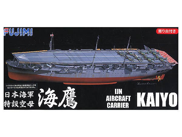 This release of Fujimi's Kaiyo can be built either as a full-hull or waterline model, and features sharp detail and excellent molding. Photo-etched metal detail parts are included to enhance the realism. The aircraft are molded in clear plastic for more realistic canopies. Fujimi notes that decals are not included for the flight deck markings.