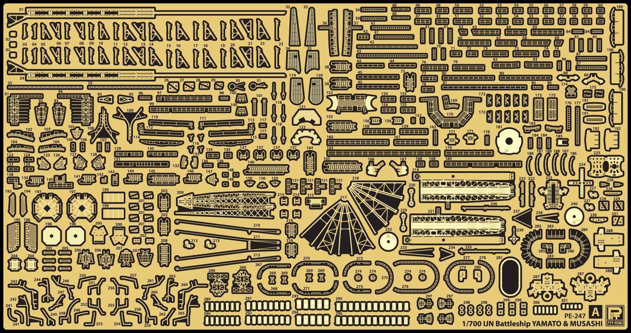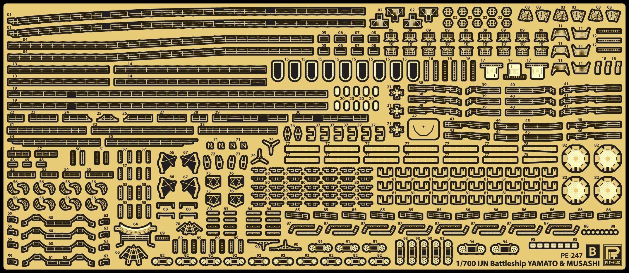 This is a set of photo-etched and turned brass metal detail parts as shown here for the new-tool Pit Road IJN Musashi!