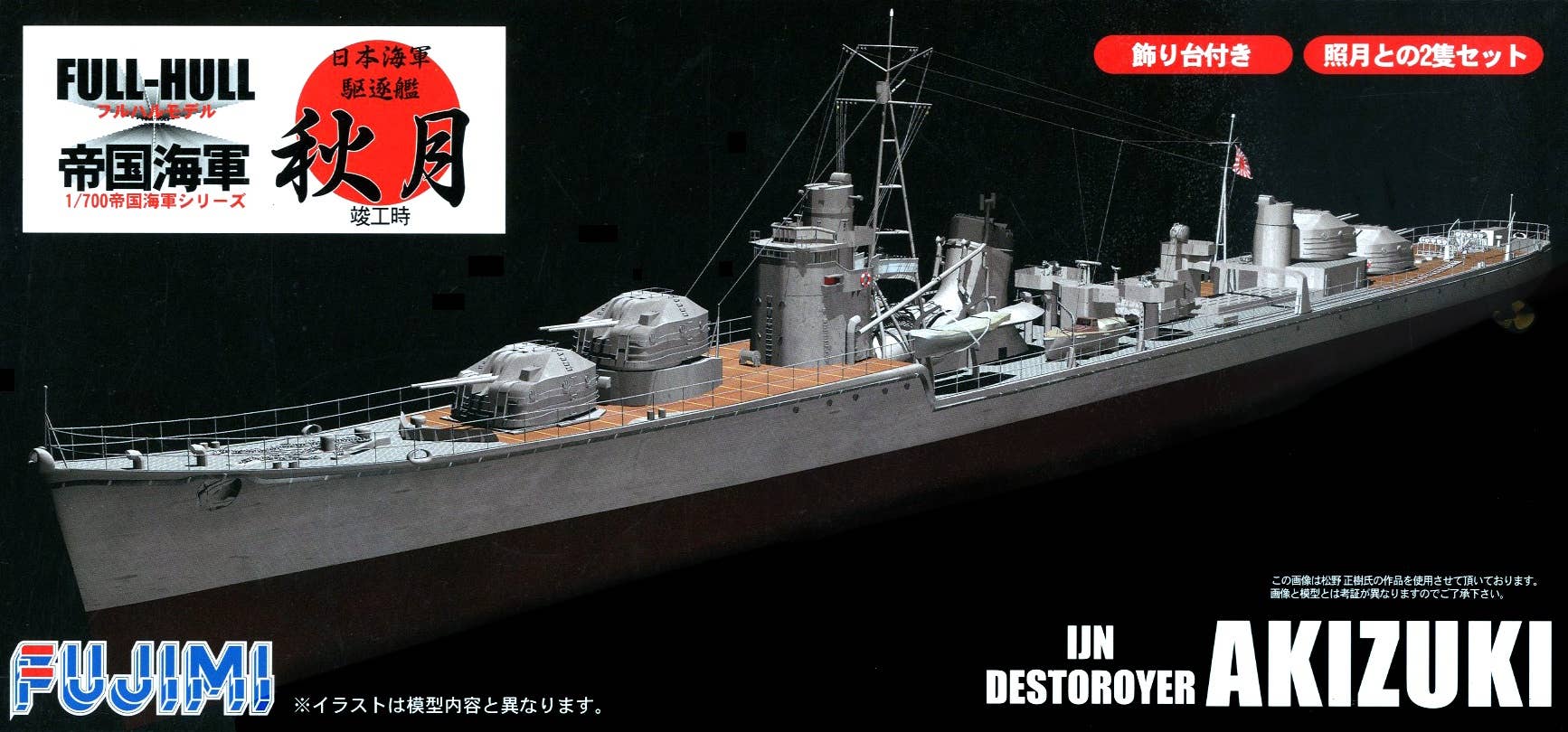 This 1/700 scale full-hull model of the Akizuki from Fujimi comes molded in grey and red, and includes decals and detailed photo-etched parts.