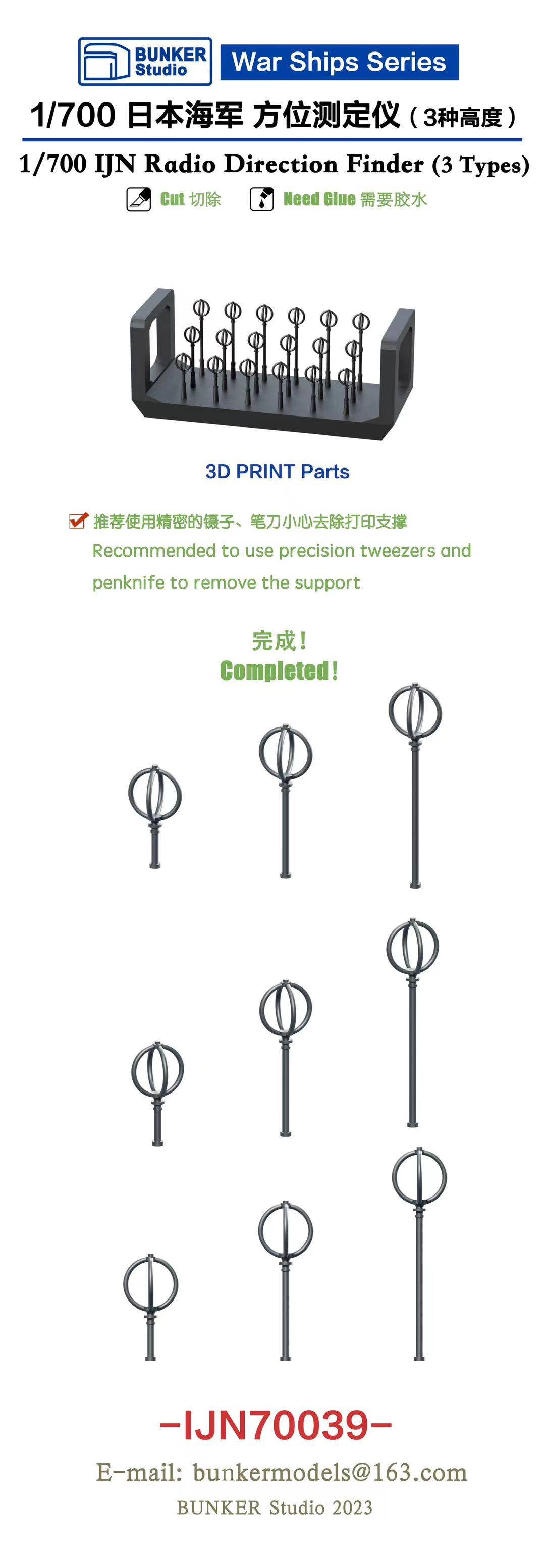 Released by Bunker Studio, this is 3D-printed 1/700 scale equipment for Japanese Navy ships.