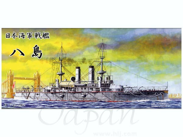 Launched in England in 1897, the battleship Yashima was the sister ship of Fuji, and was developed to cope with the Chinese modern battle ships. It joined the Russo-Japanese War and was sunk by a mine in 1904. Kit is highly detailed water-line model. Hull parts are split in half to provide details on the hull sides.