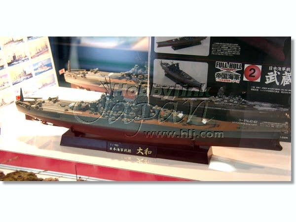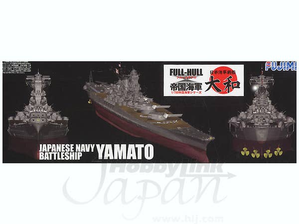 Fujimi's excellent 1/700 kit of the massive IJN battleship Yamato, this time released as a full-hull model (can still be built as a waterline model). Includes a stand with nameplate on which to display the completed full-hull model.