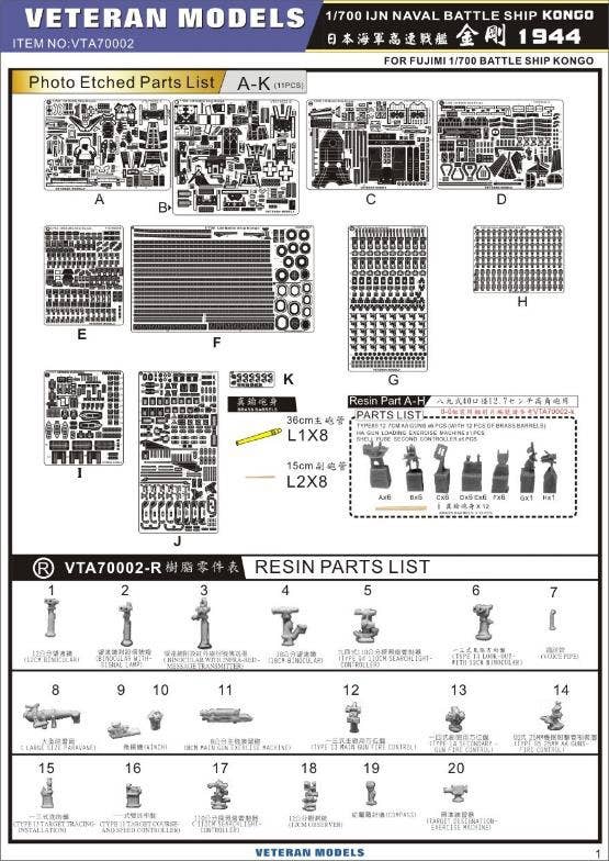 This is a set of sharply cast resin parts, photo-etch parts and brass parts to detail up the items as shown here and described in the title.