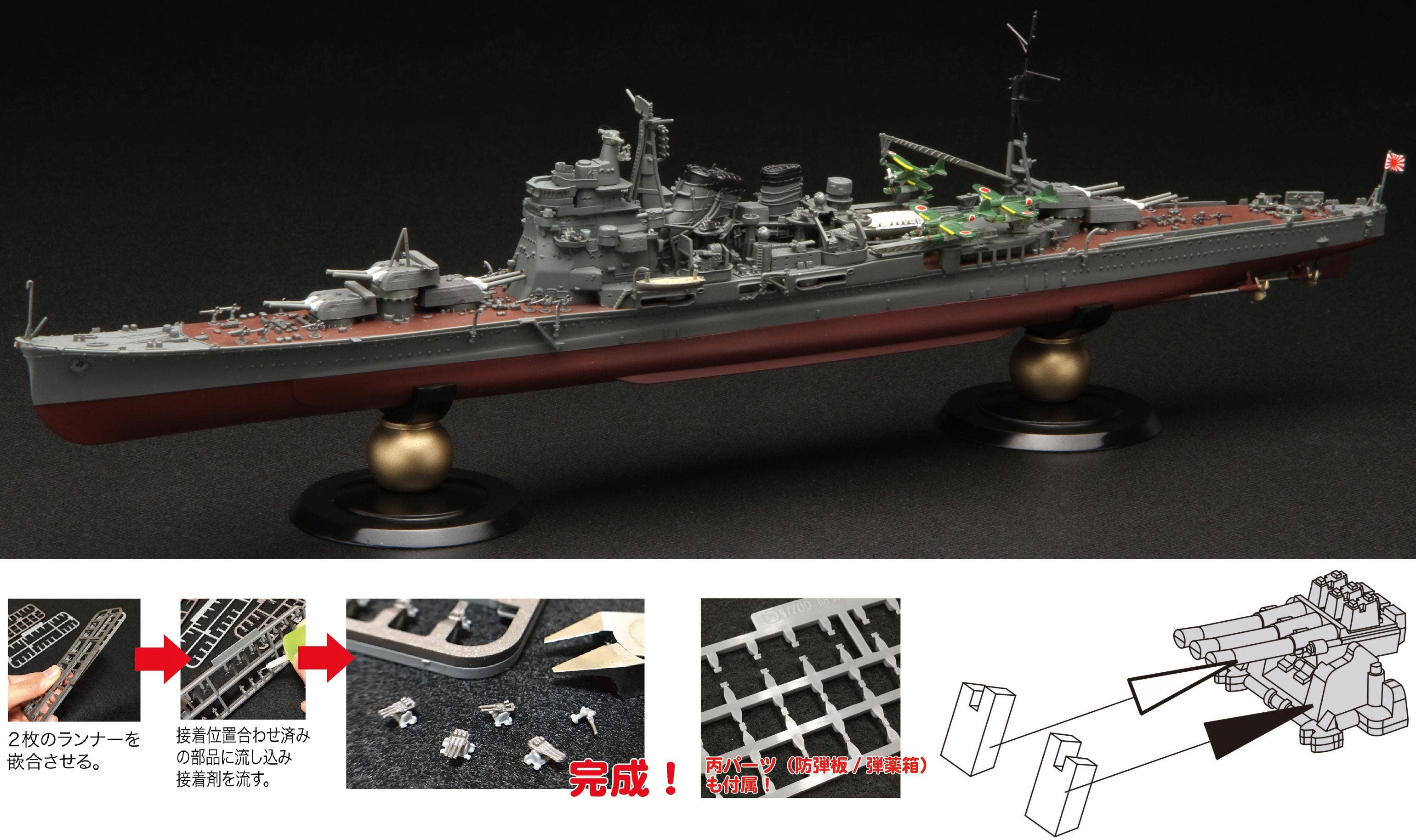 Fujimi's 1/700-scale model kit of the Japanese Navy Heavy Cruiser Takao is now available as a full-hull version! A base for display is included; the kit is molded in gray plastic, and decals are included for the Hinomaru and national flags of the carrier-based aircraft. Order yours today!