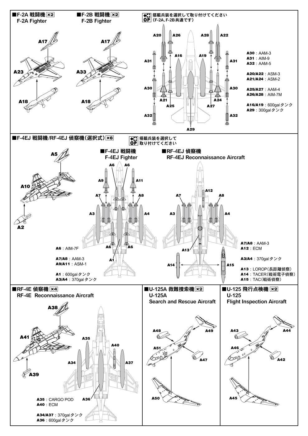 • F-4EJ Fighter / RF-4EJ Reconnaissance Aircraft (selectable) (Length: 26.3mm) x 6