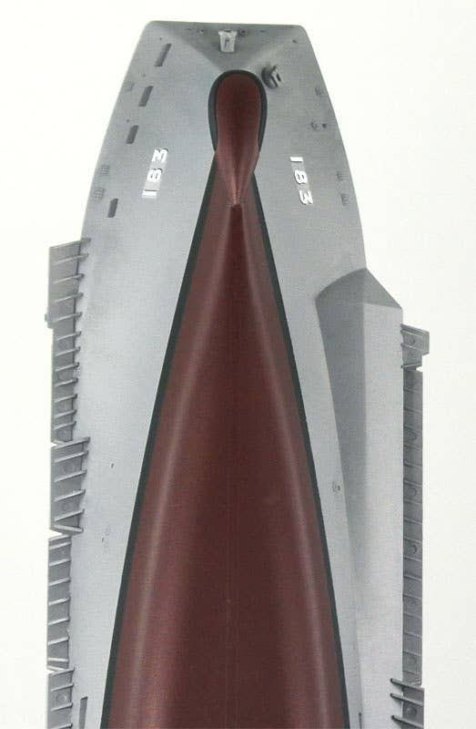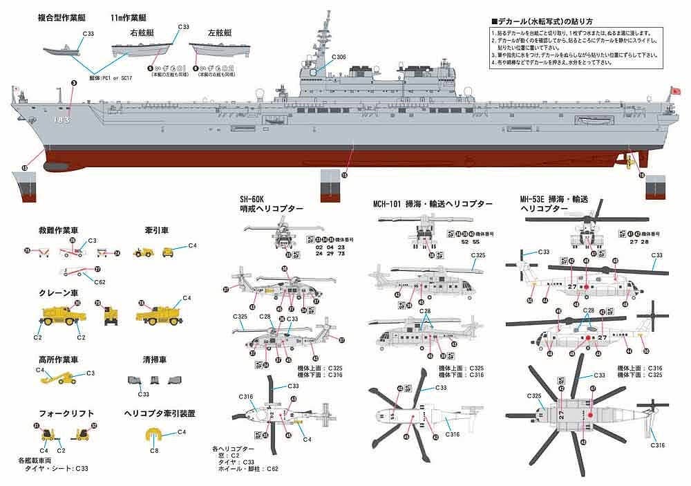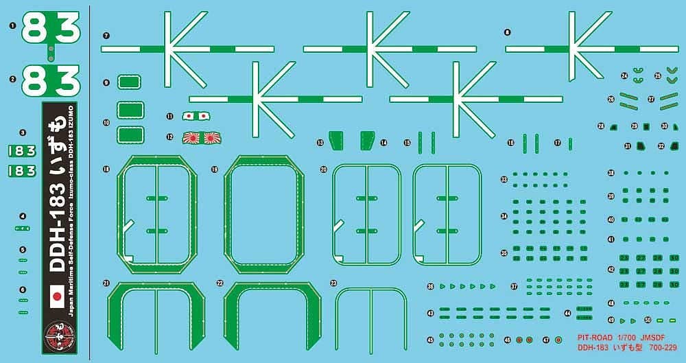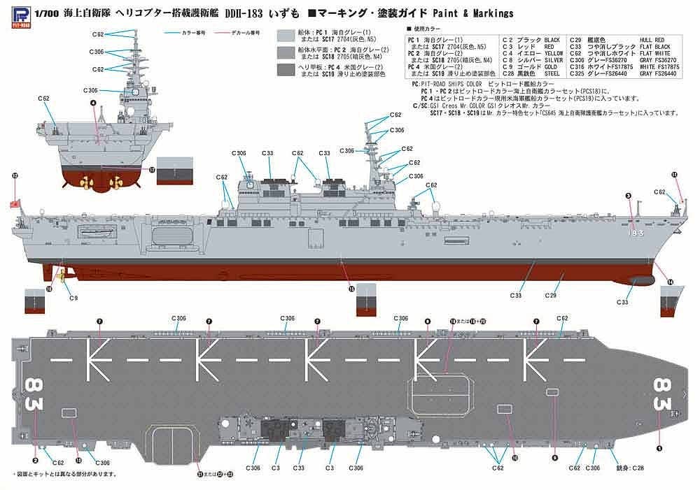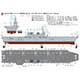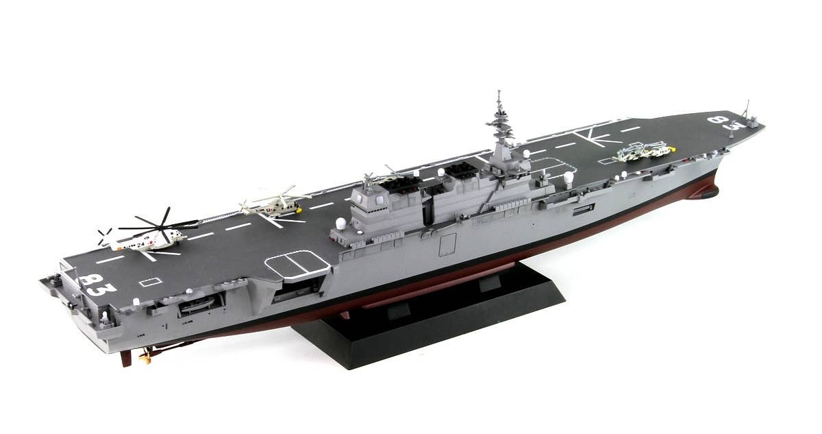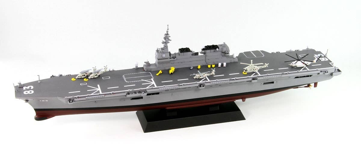 This model of the DDH-183 Izumo can be built as a full-hull or waterline model. Molded in gray and black plastic; includes parts for a base and decals.