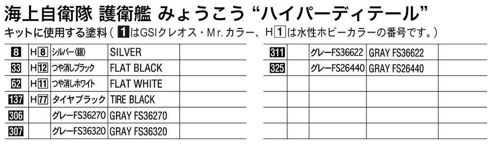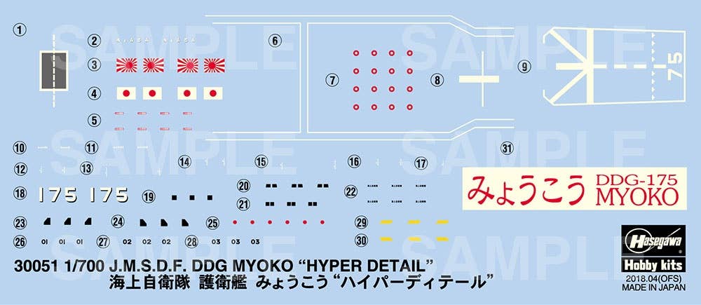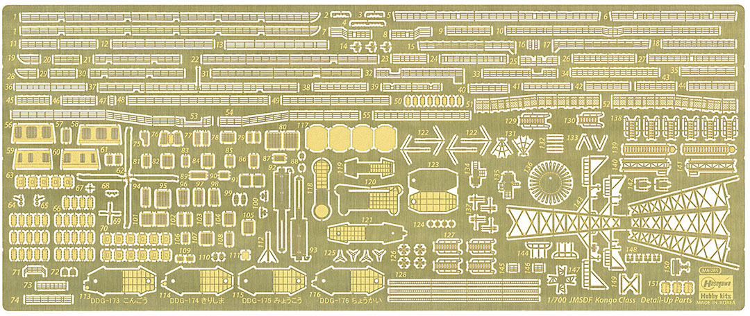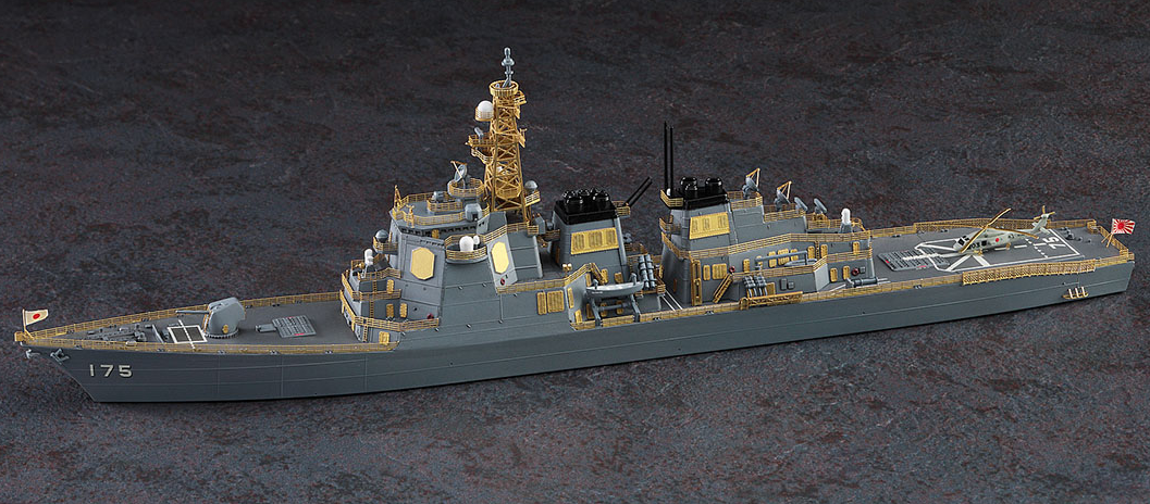 The third of the Kongo-class guided missile destroyers in the Japan Maritime Self-Defense Force, the Myoko has been in service for more than 20 years now since her commissioning in 1996. This new limited edition boxing of the Myoko in 1/700th scale includes photo-etched metal detail parts that let you upgrade or add the following: Main mast, Phased array radar, Handrails, Louvers on the outer wall, Watertight doors and more! Perfect for those looking to build a super-detailed Myoko!