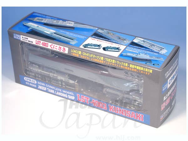 Here's a fully assembled, fully finished display model of the JMSDF's Tank Landing Ship Kunisaki. The main deck is removable to reveal the incredible detail within. Includes two CH-47 Chinook helicopters and two LCAC hovercraft, plus a display stand.