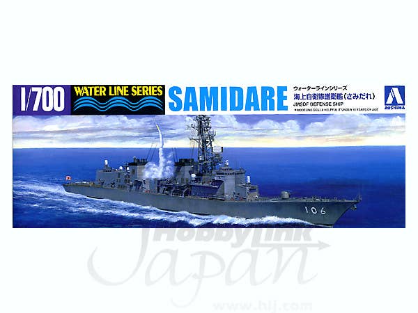 The "Takanami" class 4600-ton destroyer Samidare. The concept of the design is to strengthen the anti-surface ship attack ability with the addition of new 127mm guns. Aoshima's waterline kit of the Samidare includes decals and an SH-60J helicopter.
