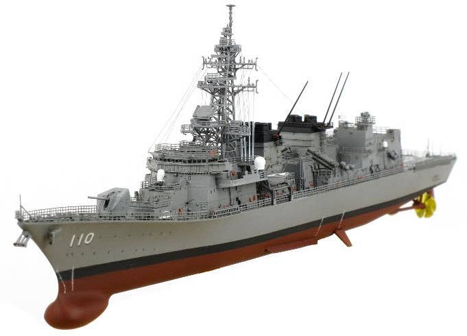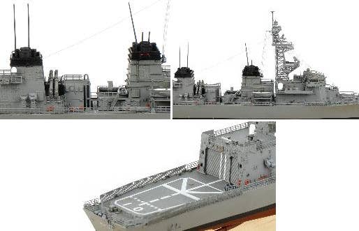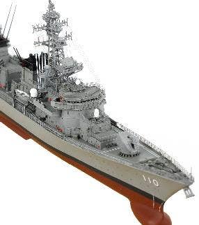 This is a ship model kit assembled from parts made of resin, white metal, photo-etched metal and possibly other materials.