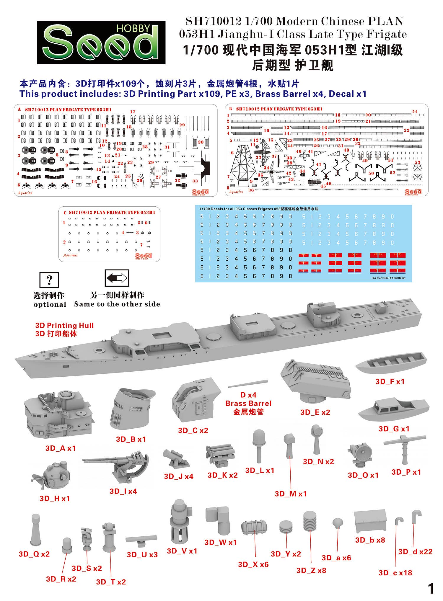 1/700 Modern Chinese PLAN 053H1 Jianghu-I Class Late Type Frigate 3D Printing Model Kit
