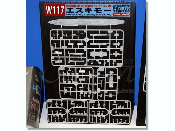 Pit-Road's kit of the Royal Navy's Tribal-class Destroyer HMS Eskimo as she appeared in 1941 can be built as either a waterline or full-hull model, and comes with a nameplate and full-color color guide. A joint project with Trumpeter.
