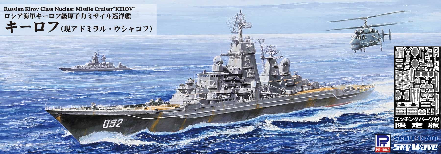 From Pit-Road comes this nicely detailed 1/700 scale model of the Russian Kirov-Class Nuclear Missile Cruiser Kirov. This kit comes with photo-etched parts, order today!