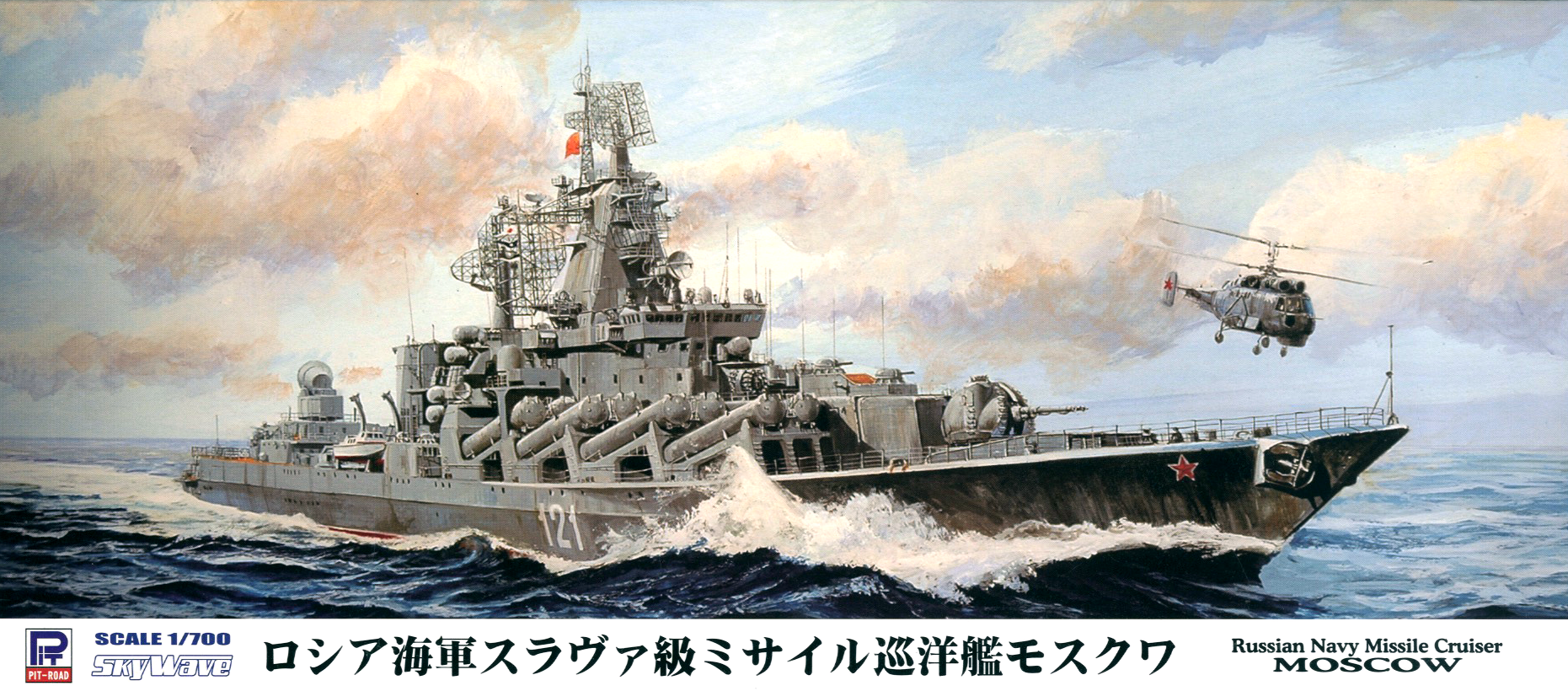 From Pit-Road in a joint venture with Trumpeter comes this nicely detailed kit of the Russian Navy Missile Cruiser Moscow in 1/700th scale! All parts come molded in light grey plastic with red parts for the lower hull. This kit can be built as either a water-line kit or as a full hull kit and includes parts for the display base as well as a plastic nameplate. Also included are photo-etched metal detail parts!
