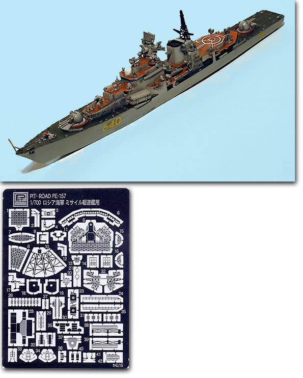 Sovremenny class DD series was started to deploy since early 1980's. It is a large DD characterized of the anti-surface & anti-air combat capability with 130mm twin guns and SS-N-22 anti ship missiles upon the traditional anti-sub capability. Recently, it received the electronic system and armament up-grade and became Sovremenny II, two vessels are sold to People's Republic of China. Kit is a hybrid of injection plastic ship model which taken from the early days line-up of PitRoad modernized with the stainless PE set for the radar & mast and the new injection plastic equipment parts.