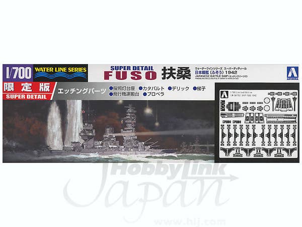 Aoshima's excellent 1/700 Fuso kit, with an added fret of photo-etched metal detail parts for enhanced realism. This kit depicts the IJN battleship as it appeared in 1942.