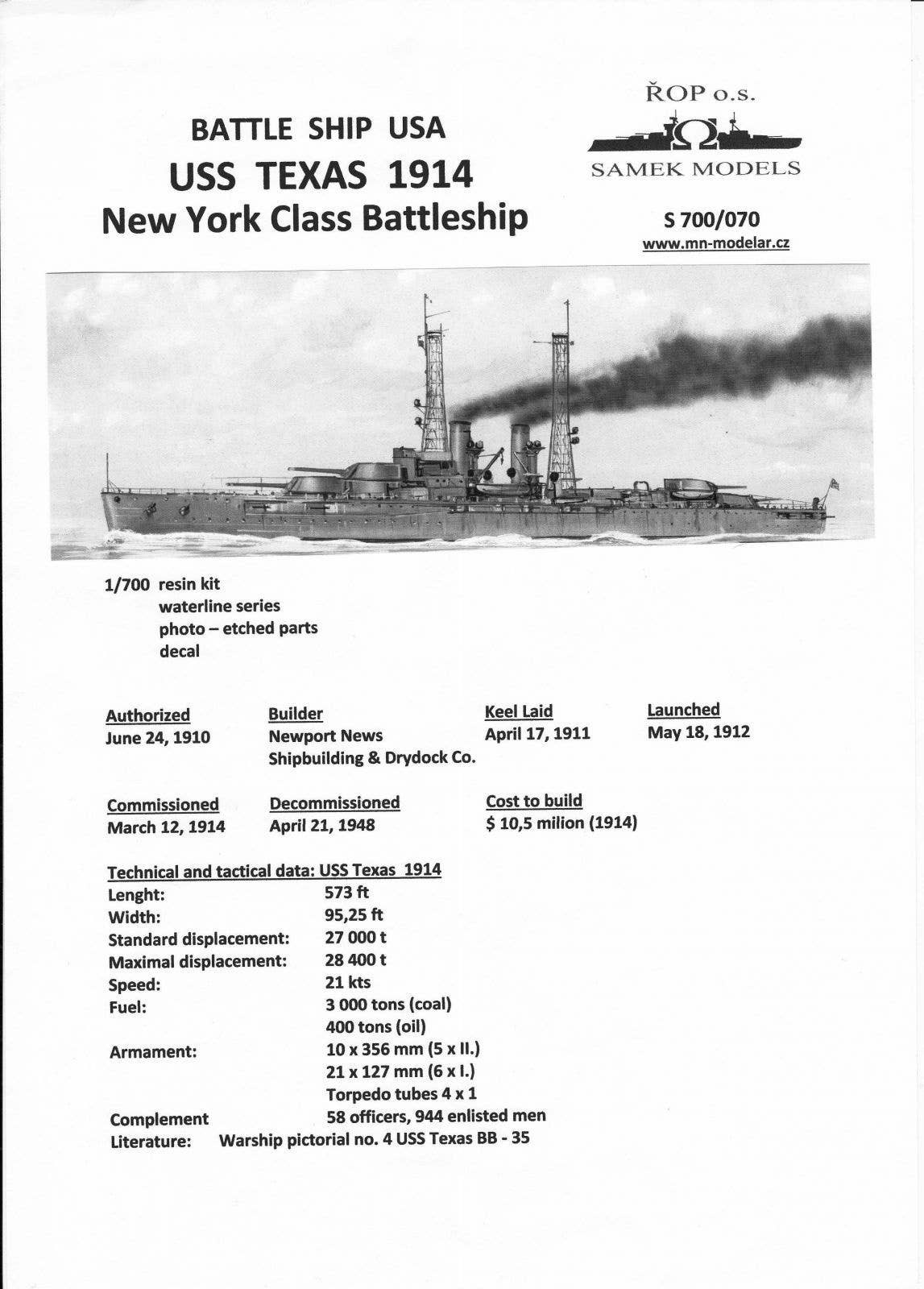 This is a highly detailed 1/700 scale plastic model kit of the USS Texas as shown in the photos. The kit contains parts molded in beige, photo-etched parts, and a decal sheet. Order yours today!
