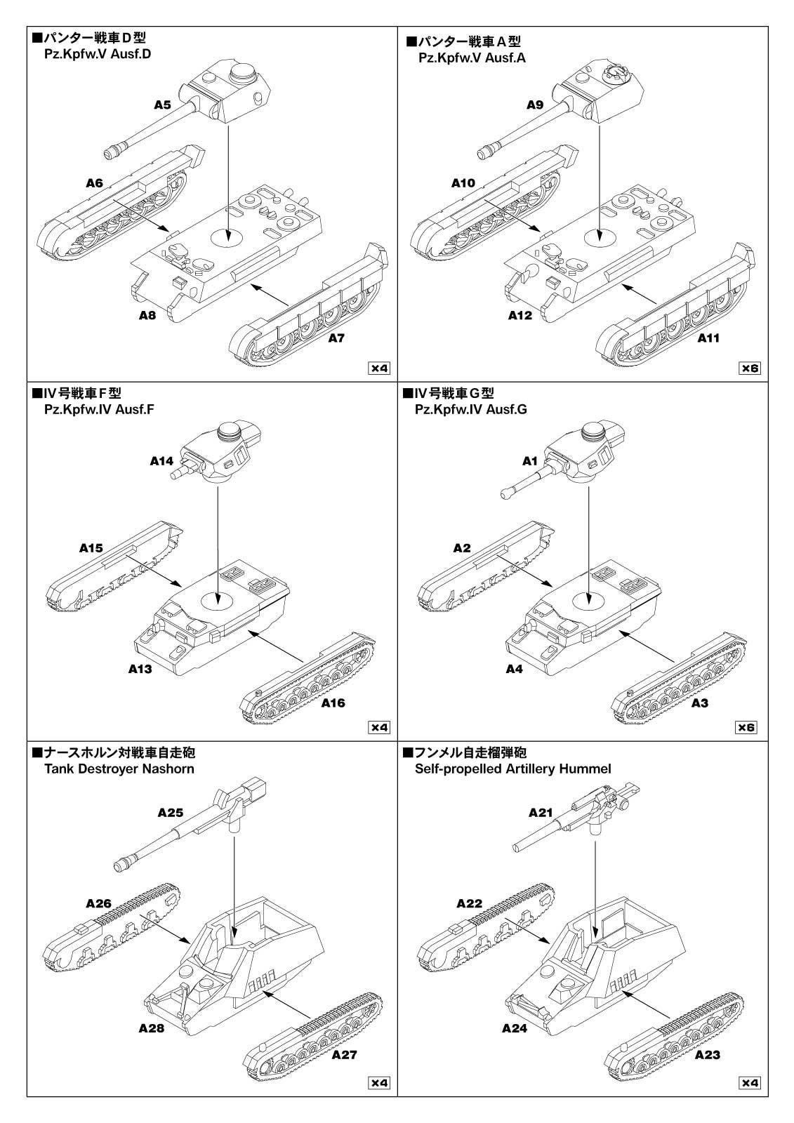 • Panther tank D type (x4) (12.8mm long)