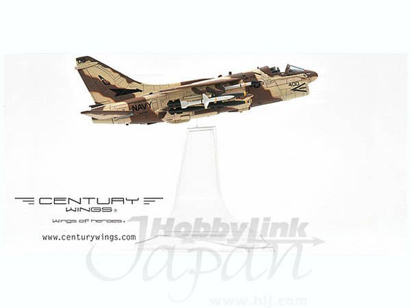 A completed desktop display model of the A-7E, in 1/72 scale, in the markings of AC/400 of VA-72 Bluehawks on the return trip home from Desert Storm. Please note a prototype is shown; the production version may vary.