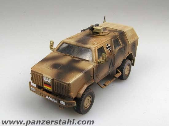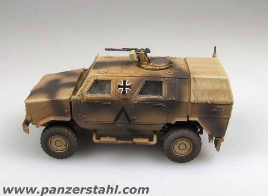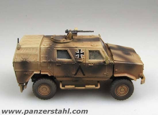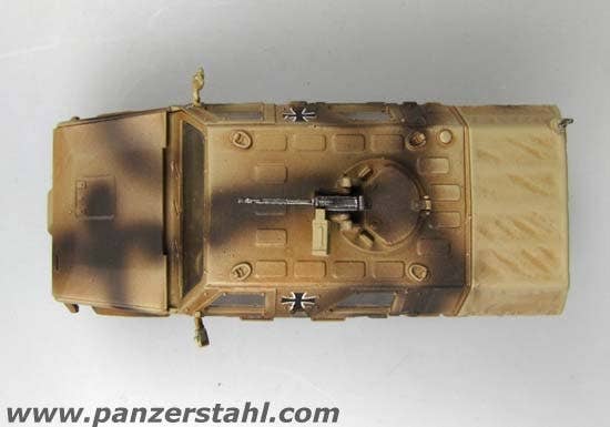 From Panzerstahl comes this fully assembled and beautifully finished die-cast display model of a military vehicle. It comes mounted on a black plastic base with a clear plastic cover to help keep it free of dust and fingerprints.