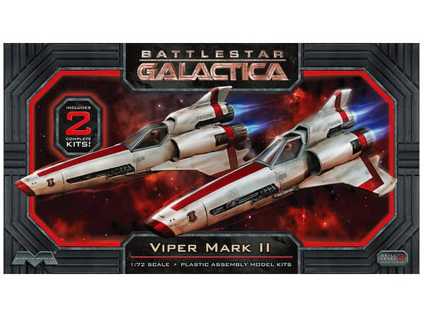 This kit includes parts to make two complete 1/72 scale Mark II Vipers, and comes with decals. When completed, these kits measure about 11.43cm (4 1/2 inches) long.