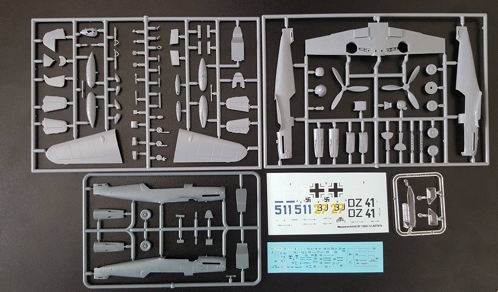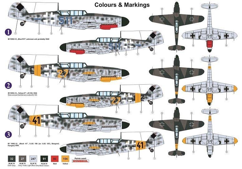 This kit from AZ Model of the Bf 109G-12 (based on the Bf 109G-4) includes plastic parts by HQT and decals for 3 different German Air Force versions.