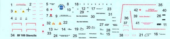 Bf 109G/K stencils