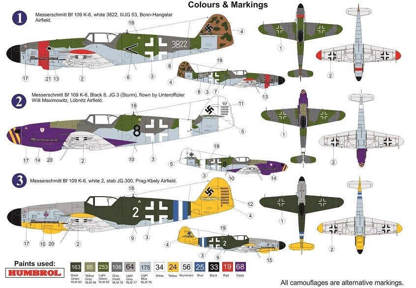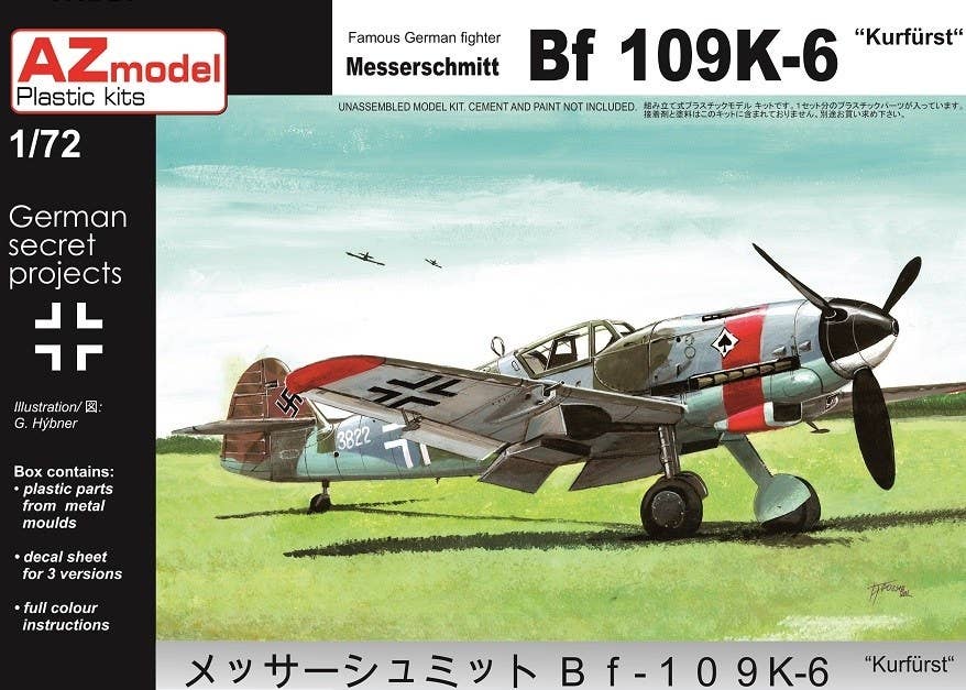 This kit builds the famous German fighter, the Bf 109K-6, in 1/72 scale.