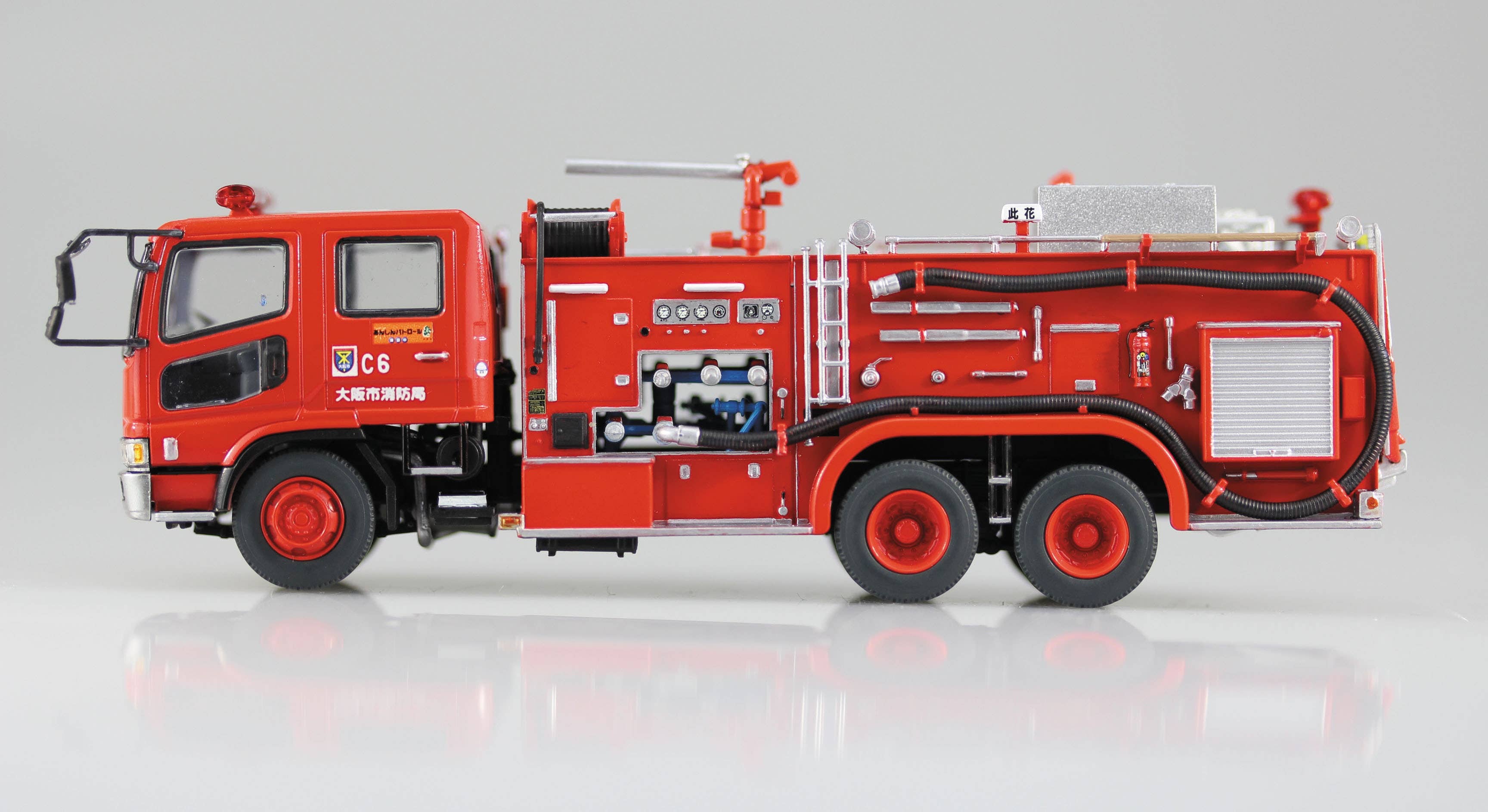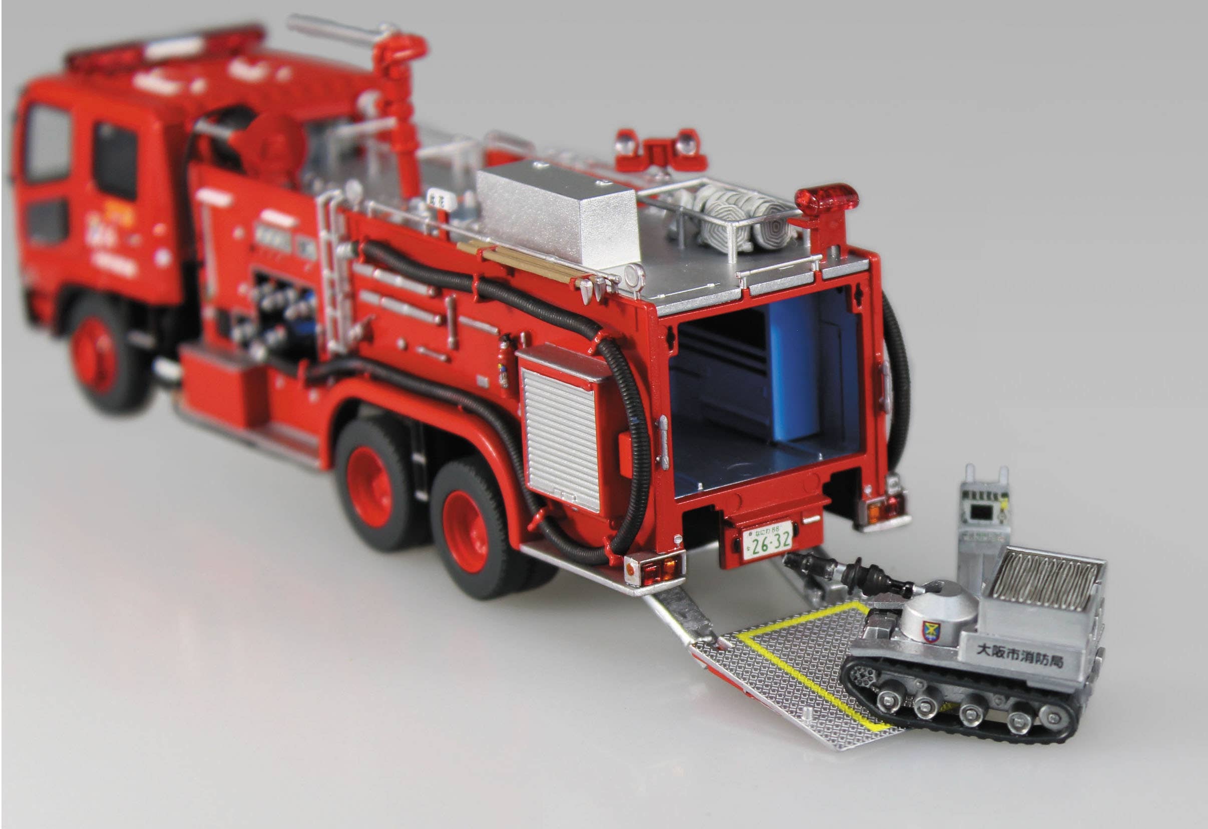 The chemical fire pumper truck assigned to the Osaka municipal fire department is deisgned for hazardous material disasters and fire explosions in industrial areas.