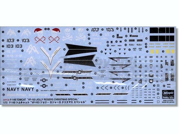 Limited reissue of the Hasegawa 1/72-scale F-14B kit with decals to mark it as the "VF-103 Jolly Rogers Christmas Special." Alternate markings also appear to be given for this plane in non-Christmas-y markings. Just in time for the holidays! See box art for marking details.