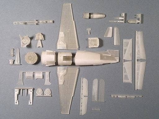 This set contains resin parts, 3D printed propeller hub, photoetch parts, vacu-canopy and 3 different decal designs. The wing tips and gunsight are casted with clear resin. This model is renown for its perfect casting and excellent attention to detail. Contains 59 parts in grey resin and 28 photo-etched parts.