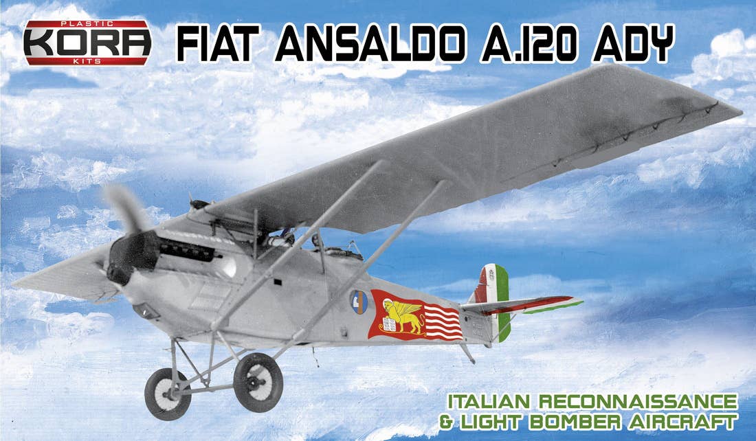 Kora Models brings us an all-new 1/72-scale model kit of the Fiat Ansaldo A.120 Ady as flown by the Italian Air Force! The A.120 is a single-engine, two-seater, parasol-wing reconnaissance aircraft designed and manufactured by the Italian company Ansaldo in the 1920s. Seventy-seven of these aircraft were built and deployed to the Italian Air Force. They were also exported to Austria and Lithuania, where they served in their respective air forces. Photo-etched wire wheel parts and decals for three Italian Air Force versions are included. Order yours today!