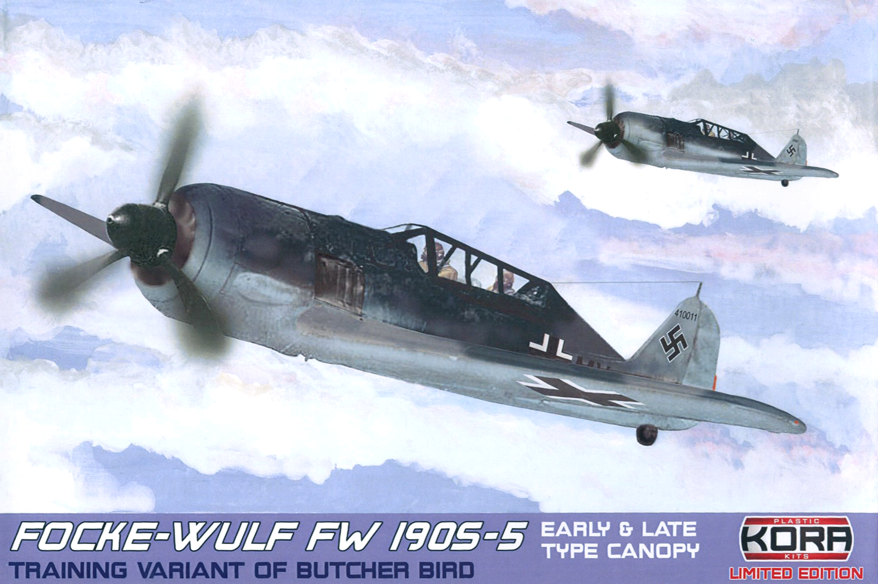 KORA Models of the Czech Republic presents this sharply molded kit of the Focke-Wulf Fw 190S-5, a training variant of Butcher Bird. With parts by Eduard, it features a newly-tooled double-seat cockpit, a vaccum-formed canopy, a fret of photo-etch parts, painting mask seals, and decals for four versions of markings.