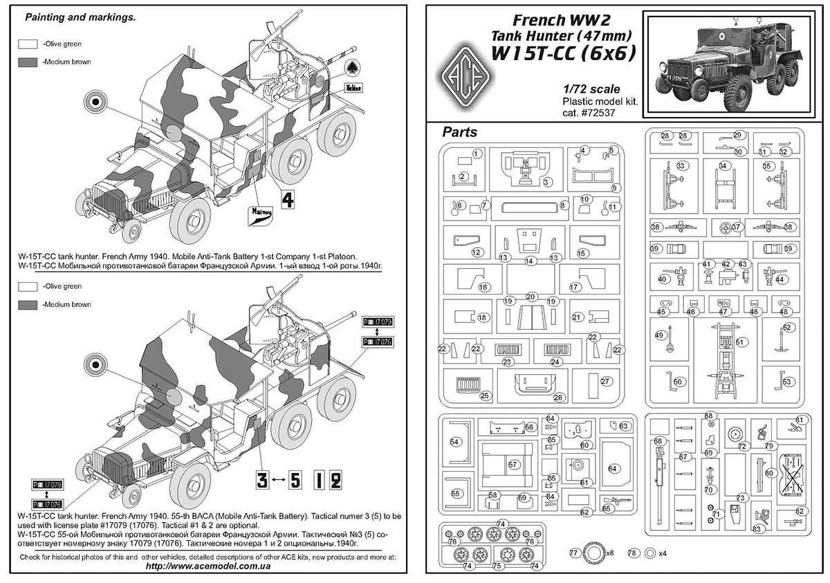 The V15T was designed by Laffly as an artillery tractor, mainly for transportation of the 25mm Hotchkiss SA Mle.34 and SA-L Ml.37 anti-tank guns. The V15T has a differentnontrivial chassis equipped with Laffly's "business card"--erratic small wheels at the bow and under the floor, which improved throughput. The main customer of the V15T was the cavalry, for which Renault's EU light crawler tractors were not mobile enough. In late 1938, Laffly received an order for 100 V15T trucks, but the factor, overloaded with orders, was only able to release 80 cars, and 20 more in 1940, after which production stopped. The total order for 1940 was 1,386 cars, but in reality only 200 were produced.