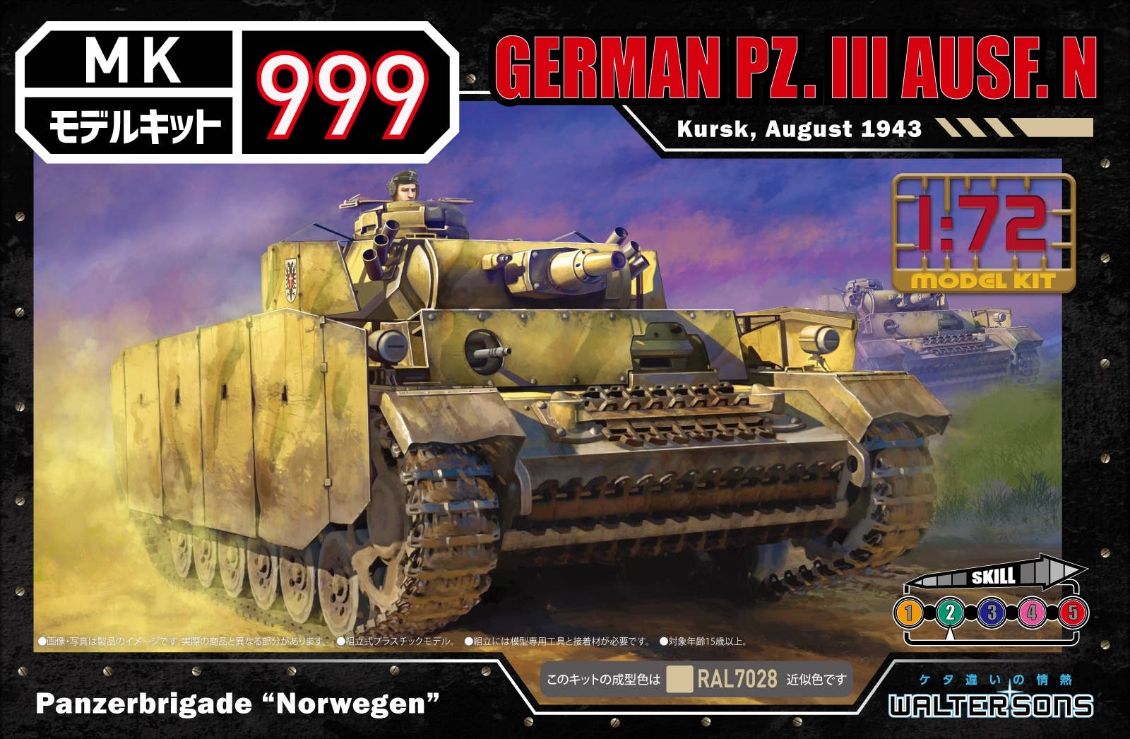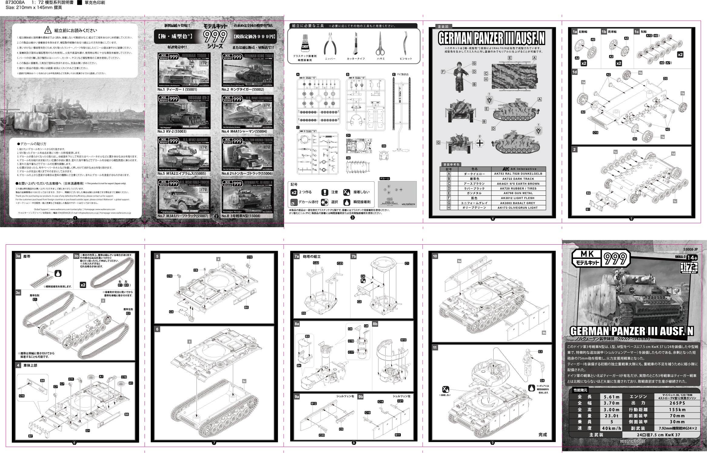 The Model Kit 999 series is a plastic model that uses an adhesive that allows for easy assembly of parts. The base color of the model allows for it to be easily colored, which can then be finished off with the decals provided within the kit.