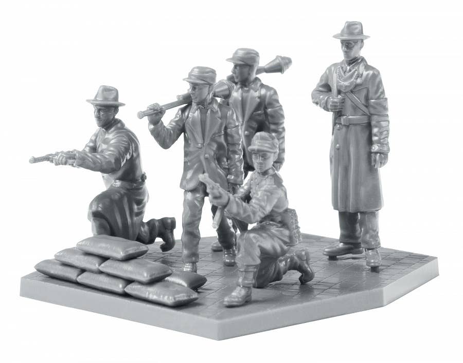 This is a set of five unpainted German Volkssturm figures from Zvezda.