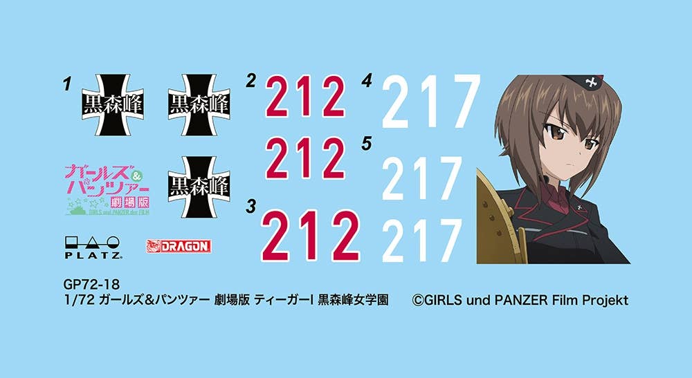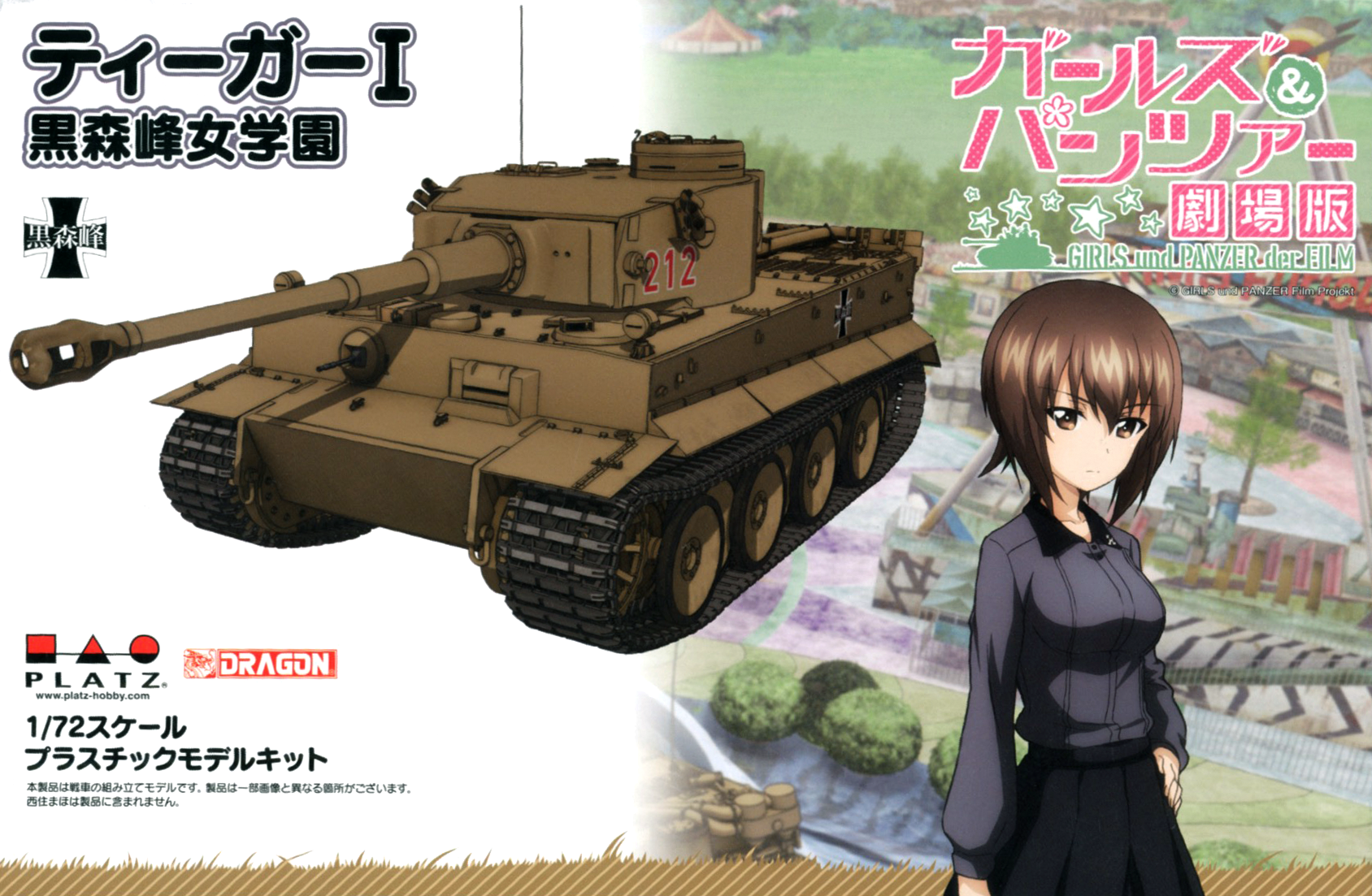 This kit allows you to build a replica of the Tiger I used by Kuromorimine Girls High School in "Girls und Panzer der Film"! It will be about 12.5cm long when completed, and features decals by Cartograf! Includes integrated-track DS tracks.