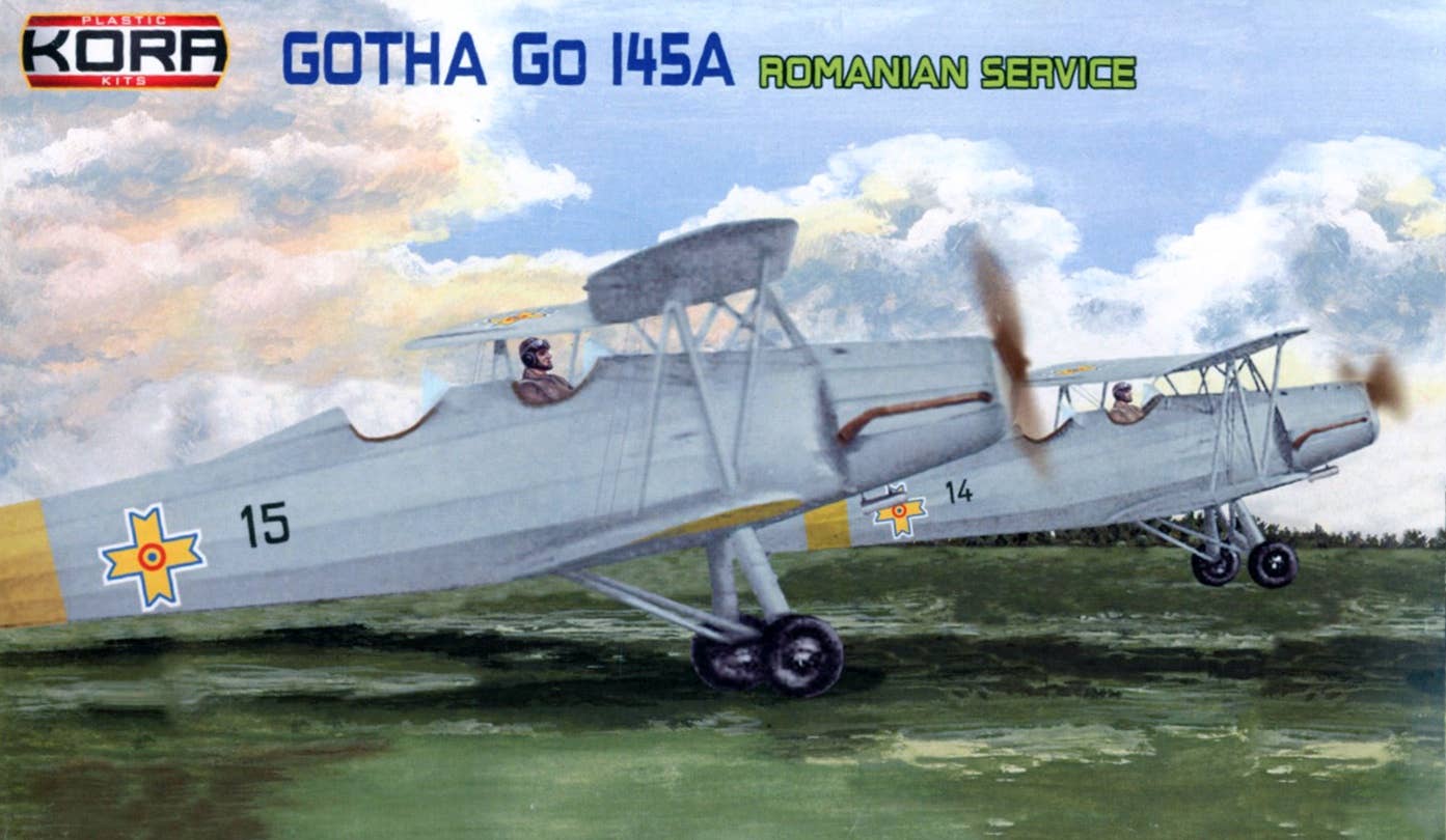 Kora Models of the Czech Republic proudly presents this injection kit of the German WWII-era training biplane Gotha Go 145A. Some resin parts are included, along with a vacuum-formed windshield and five sets of markings.