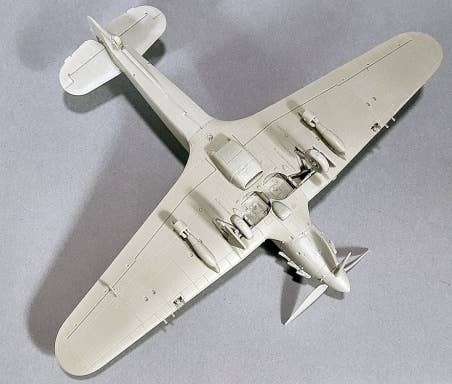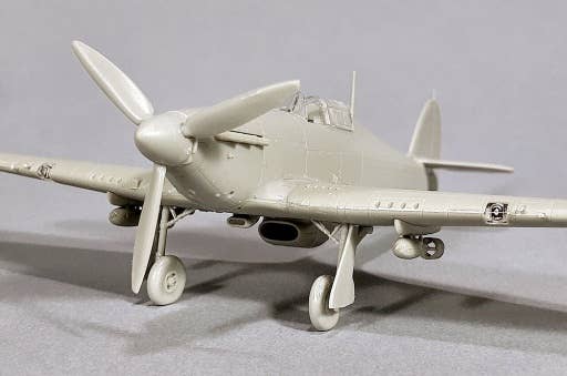 The Hawker Hurricane Mk.II B is equipped with the Merlin XX engine, which is more powerful than the Merlin Mk.II/III engine installed in the Mk.I, and the nose is extended about 11.4cm longer than that of the Mk.I; a large radiator is also installed. It was armed with a .302 caliber machine gun with 12 gates; a maximum of two 500-pound bombs could be mounted on the Mk.II B, and it was nicknamed the "Hurribomber" because it was mainly used in ground attacks.