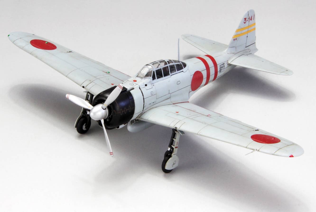The 12-shi features new molds for parts such as the engine and propeller and tail that accurately recreate the aircraft, while the Zero Model 11 has a newly molded windshield. The kit comes with two types of markings, including one for the first zero fighting unit 12th division captain, Minoru Suzuki.