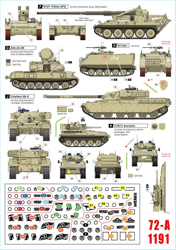 This is a sheet of decals for marking military vehicle models.