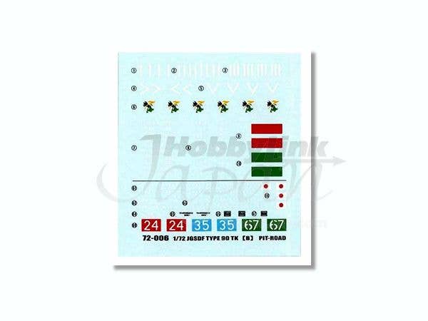 Pit Road has been collaborating with Trumpeter and this time they have produced post-war Japanese MBTs in 1/72 scale. These are the first injection model kits produced accurately in this scale (the ones from Fujimi were a little bit smaller -- 1/76 scale). These kits benefit from today's sophisticated computer-assisted design and machining. Every part is tooled like an accurate reduction of the 1/35 scale kit. Great care will be required when cutting the tiny, thin parts from the gates on the sprue. The third in the series is Type 90 MBT, the core of the JGSDF tank force. Each of the suspension arms are injected separately. Several optional parts like the exhaust covers and fording equipment are prepared for the modeler's choice. The 120mm gun barrel is molded in one piece with an opened muzzle. One decal sheet with a variety of colorful insignias is included. Tracks are rubber belt type. Two figures are included. This release includes extra JGSDF unit markings. Includes exploded-view pictorial-type instructions, with some notes in English and Japanese.