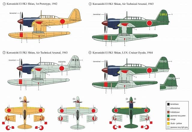 From RS Models of the Czech Republic comes this sharp kit of the distinctive Japanese reconnaissance seaplane Kawanishi E15K1 Shiun! Molded in gray plastic, this kit includes decal markings for five different aircraft.