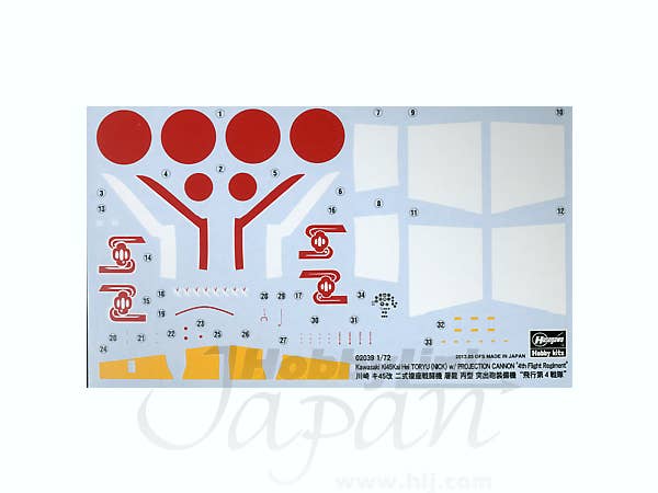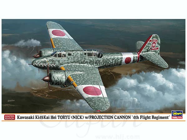 Limited reissue of the Hasegawa 1/72 kit with markings for a Kawasaki Ki-45Kai Hei Toryu with Projection Cannon of the 4th Flight Regiment. For marking details please see box image above.