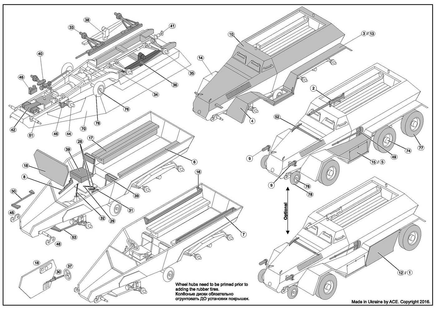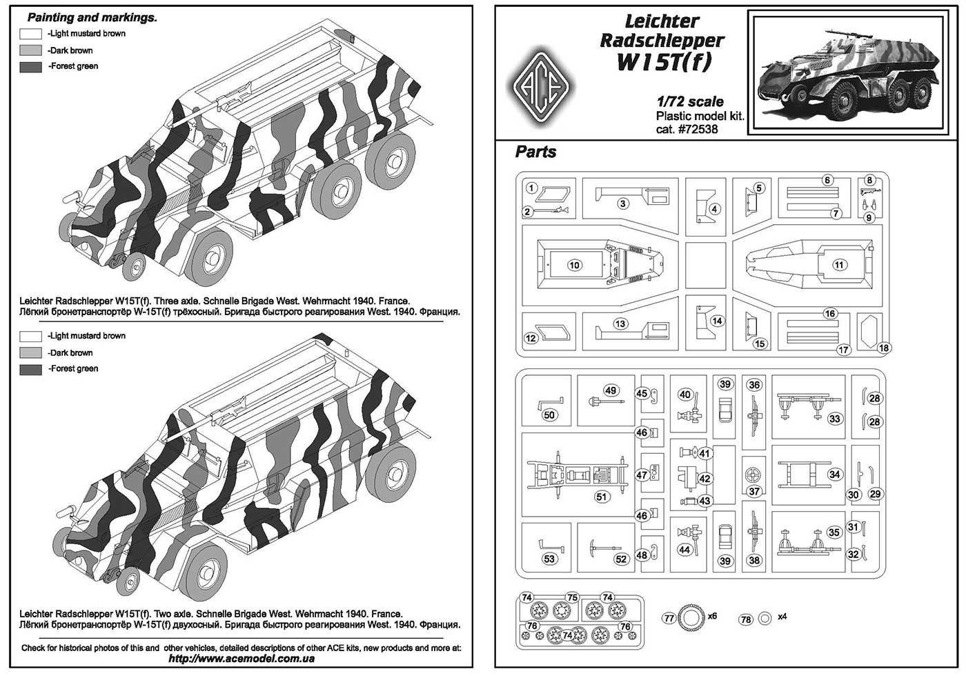The Laffly W15T was a low-profile version of the S15T. It was made by Hotchkiss and was used to tow the 47mm gun. A few dozen W15Ts were captured by the Wehrmacht and used to tow Pak.38 guns, and a few were armored and converted into APCs. This Laffly W15T Gepanzerte "Becker" version features a four-cylinder 60hp engine and a 6x6 independent suspension with coil springs up front and leaf springs in the rear. This was the armored "Baukommando Becker" version for the Schnellen Brigade West.