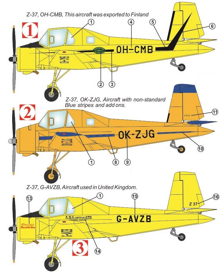 KP Model's kit of the Let Z-37 Cmelak ("bumblebee" in Czech), an aircraft mainly used for agricultural purposes such as cropdusting and for towing gliders, comes with decals for three different versions: Czech, Finland and Britain. Order today!