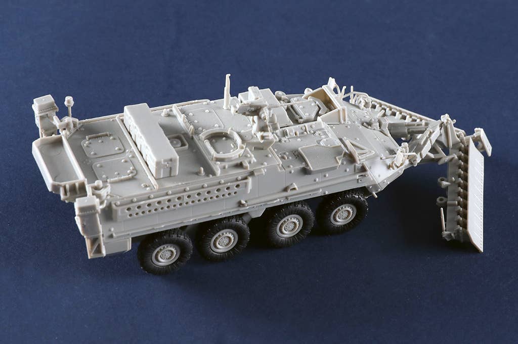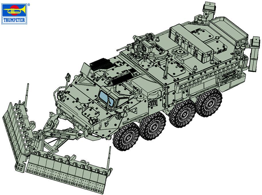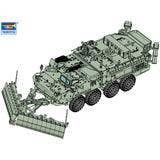 The M1132 Stryker Engineer Support Vehicle with SMP and AMP, used by the U.S. military, is now available as a 1/72-scale model kit from Trumpeter! Despite its compact scale, this model kit accurately reproduces the detailed construction of various weaponry. The tires are made of rubber-based resin, and decals are included too. Place your order today!